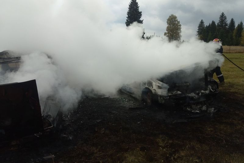 La sosirea echipajelor, ardeau două autoturisme, în proporție de 80%, fără pericol de propagare.Autoturismele aparțin aceluiași proprietar. Acesta a încercat să pornească una dintre mașini, care avea bateria descărcată, prin cabluri de curent conectate la acumulatorul celui de-al doilea autoturism. În acel moment s-a produs scurtcircuitul care a condus la izbucnirea flăcărilor.