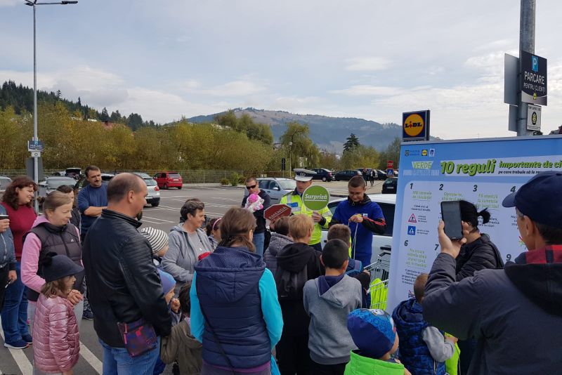 Peste 500 de copii şi aproape 300 de părinţi au participat în data de 28 septembrie, între orele 11.00 şi 13.00, la un curs de educație rutieră, susținut de Poliția Română în parcările de pe raza judeţului aparţinând unui hypermarket. Copiii, dar şi părinţii au avut ocazia să învețe cum pot deveni pietoni exemplari și cum pot preveni accidentele rutiere.