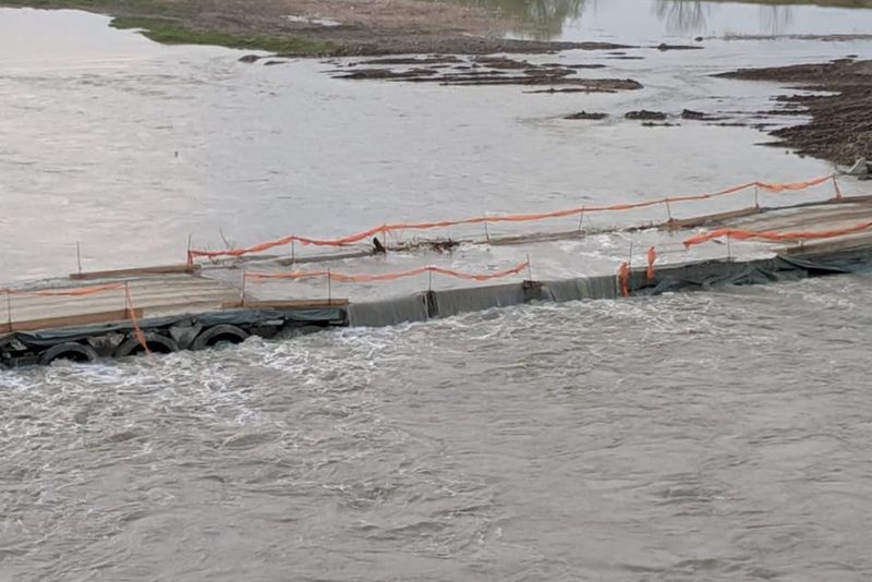 Podul provizoriu de la Verești a fost acoperit de apă VIDEO