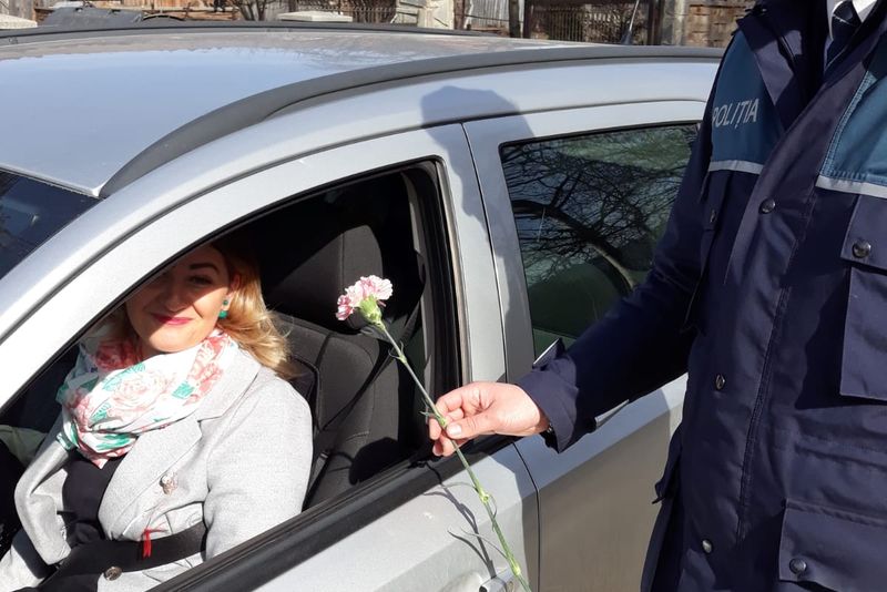 Astfel, polițiștii din cele mai îndepărtate colțuri ale județului au oferit doamnelor și domnișoarelor identificate în trafic, flori, mărțișoare și recomandări preventive.