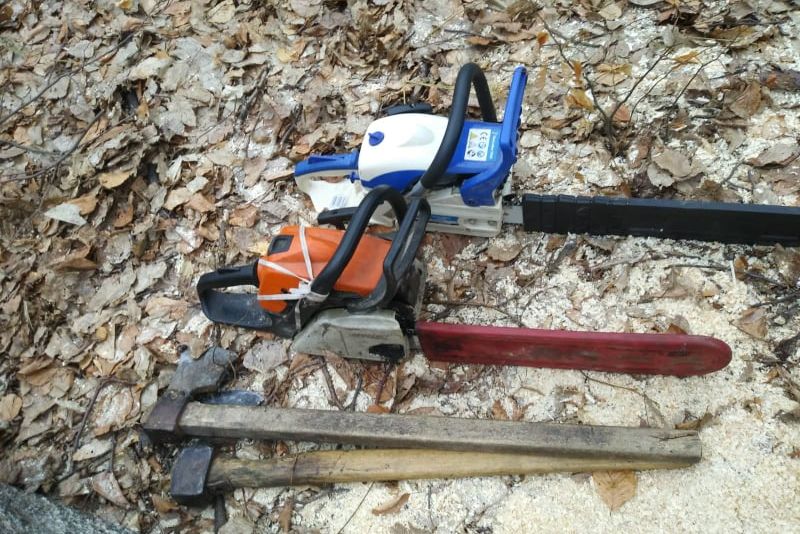 Prinși de jandarmi în timp ce tăiau ilegal arbori FOTO