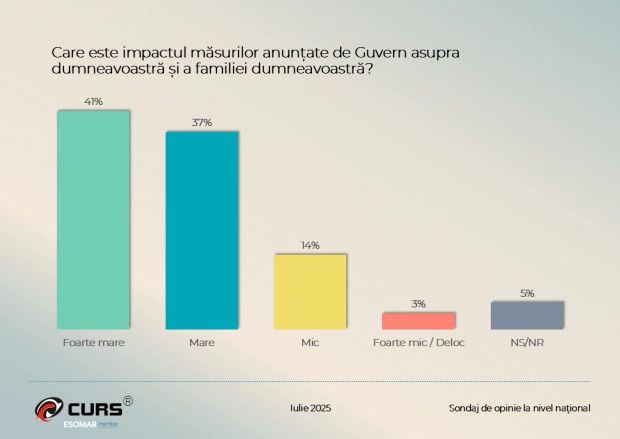 CURS a făcut publice rezultatele celei mai recente cercetări de tip Omnibus, realizată în perioada 4-10 iulie 2025, care surprinde reacția populației față de măsurile de austeritate adoptate de Guvernul condus de Ilie Bolojan.