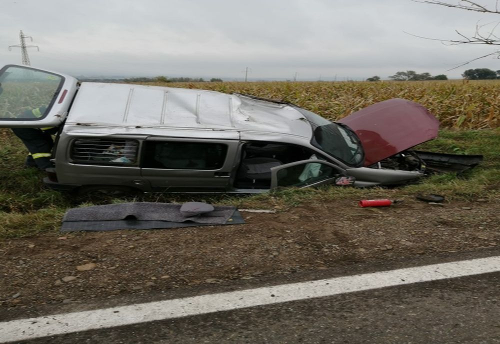 S-a răsturnat cu mașina în șanț (FOTO)