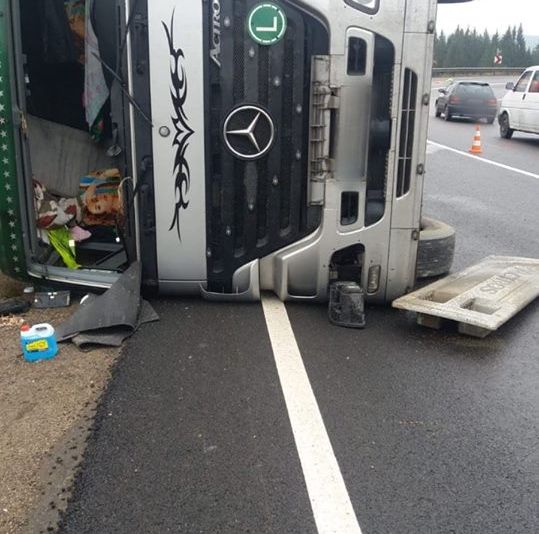 Accident rutier pe raza localității Piatra Fântânele, județul Bistrița Năsăud. Un șofer a ajuns la spital după ce s-a răsturnat cu tirul.