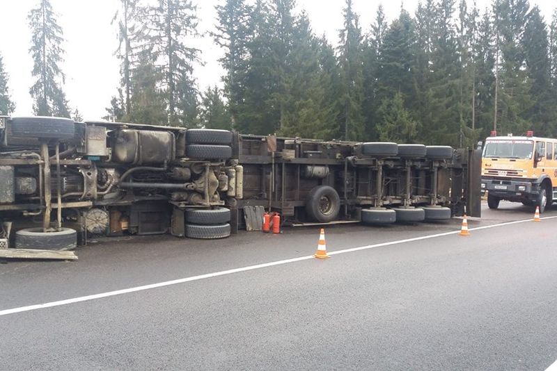 Incărcătura din tir, scânduri, s-a răsturnat pe marginea drumului.Polițiștii fac cercetări pentru a stabili circumstanțele în care s-a petrecut accidentul.