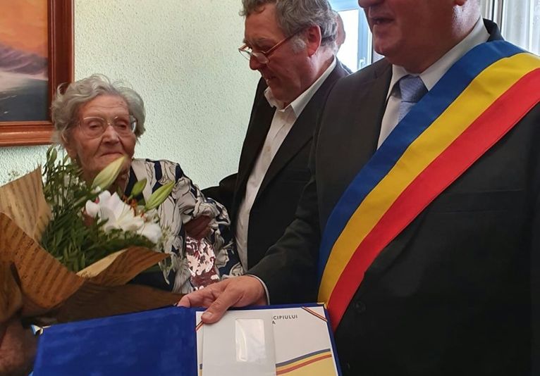 Suceveanca Elena Manolache felicitată de municipalitate la împlinirea vârstei de 100 de ani FOTO