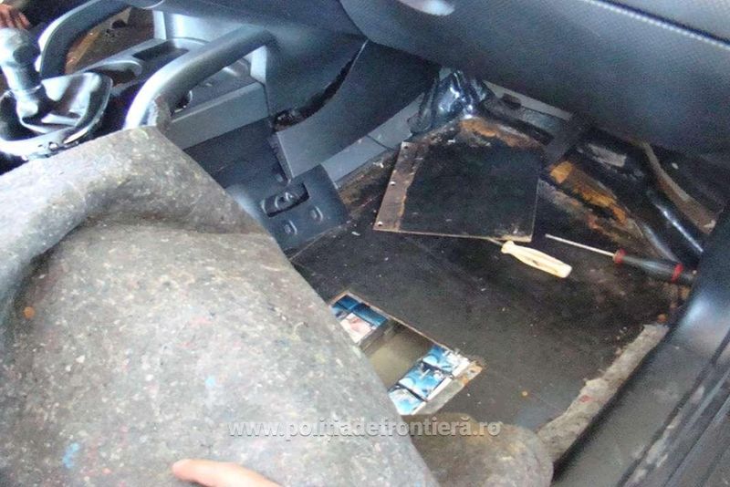 Țigări de contrabandă, descoperite în podeaua unui autoturism FOTO