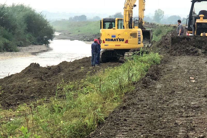 În urma viiturilor de pe râul Suceava din perioada iunie-iulie, a fost afectat digul ce protejează sursa de alimentare cu apă a municipiului Rădăuți, astfel încât circa 30.000 de locuitori erau în pericol de a rămâne fără apă. Lucrările constau în desfacerea lucrărilor provizorii pe o lungime de 50 de metri, refacerea corpului digului pe o lungime de 150 metri liniari și refacerea prismului, grinzii și pereului pe o lungime de 50 metri liniari. Până în prezent au fost executate lucrările de desfacere în totalitate, s-a refacut corpul digului pe toată lungimea de 150 metri liniari și s-au executat în proporție de 90% lucrările de refacere a prismului, grinzii și pereului. Lucrarea constă în refacerea digului de deviere pe o lungime de 150 metri și are o valoare alocată de 324.000 lei.