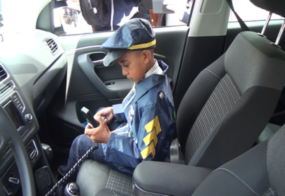 Astăzi, polițiștii i-au adus dulciuri și cadouri, printre care și o uniformă de polițist. Băiatul a îmbrăcat uniforma și s-a plimbat cu autospeciala de poliție, cu speranța că aceasta va fi meseria lui în viitor.