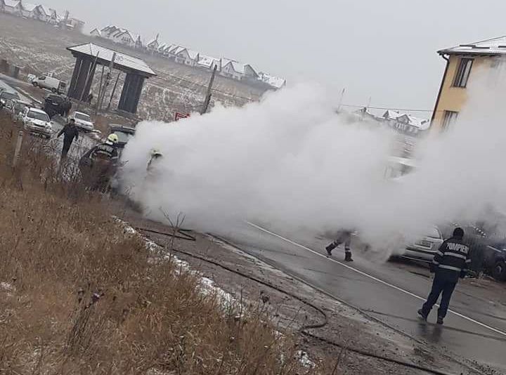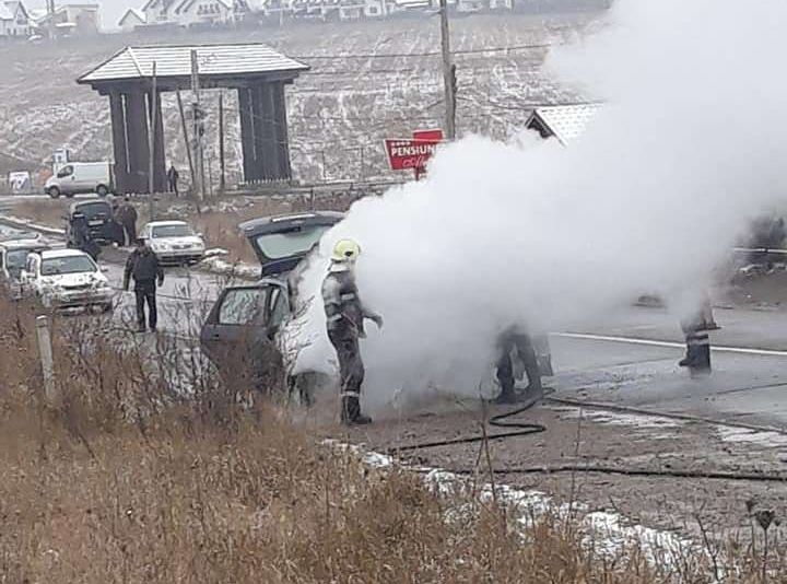 Un autoturism a luat foc în trafic, sâmbătă, pe raza localității Moara. Șoferul a văzut cum din mers, de sub capotă, începe să iasă fum.