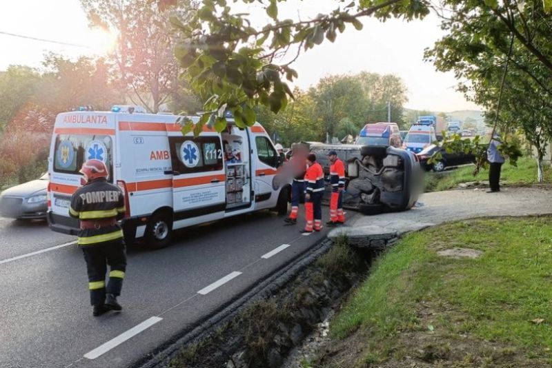 Un accident rutier grav a avut loc marți dimineață pe Drumul European 85 - Drumul Național 2, în județul Suceava. Un autoturism cu 4 persoane s-a răsturnat pe carosabil, la Bunești. Pasagerii au fost transportați la spital.