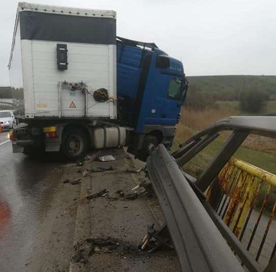 Un șofer a intrat cu TIR-ul într-un parapet pe raza localității Stroiești FOTO