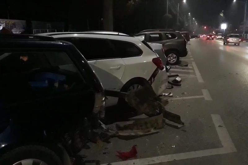 Accidentul s-a petrecut luni seară, pe strada Universității. Un șofer a pierdut controlul asupra direcției de mers și a avariat trei autoturisme parcate regulamentar. În urma impactului una dintre mașini a fost grav avariată, una din portierele acesteia fiind străpunsă de o bucată de caroserie de la o altă mașină. Proprietara a povestit că a parcat autoturismul în zonă cu numai 20 de minute înainte de producerea accidentului. Mașina era nouă, fiind achiziționată în luna ianuarie a acestui an.