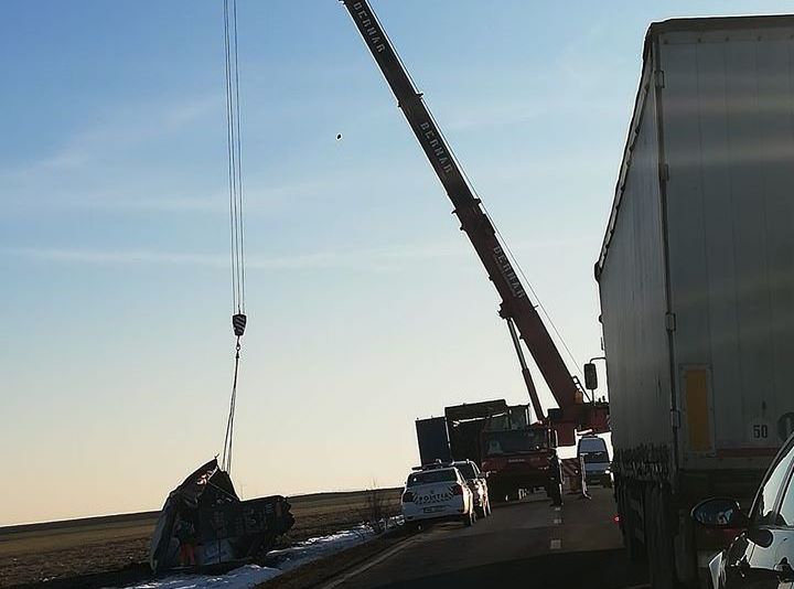 Un șofer din Ucraina s-a răsturnat cu tirul după ce s-a urcat la volan mort de beat.