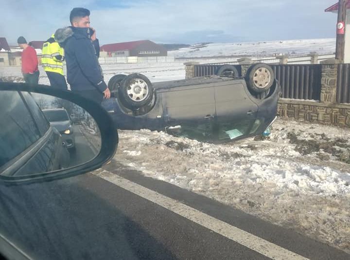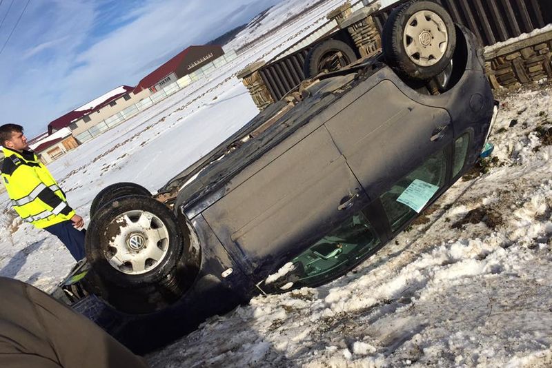 Un tânăr s-a răsturnat cu mașina din cauza vitezei FOTO
