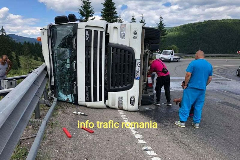 Un TIR s-a răsturnat, marți după-amiază, pe DN 17, în Pasul Mestecăniș.