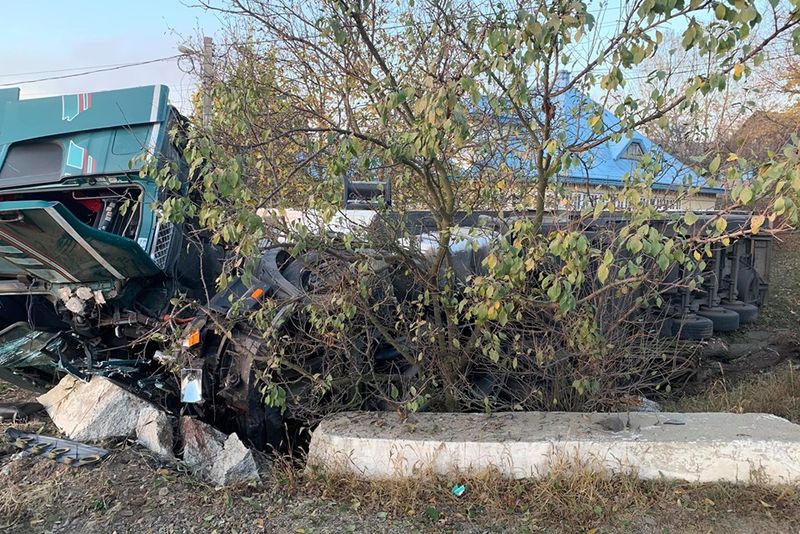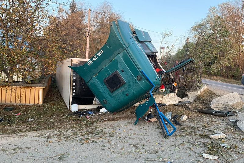 Un tir scăpat de sub control s-a răsturnat la Milișăuți FOTO
