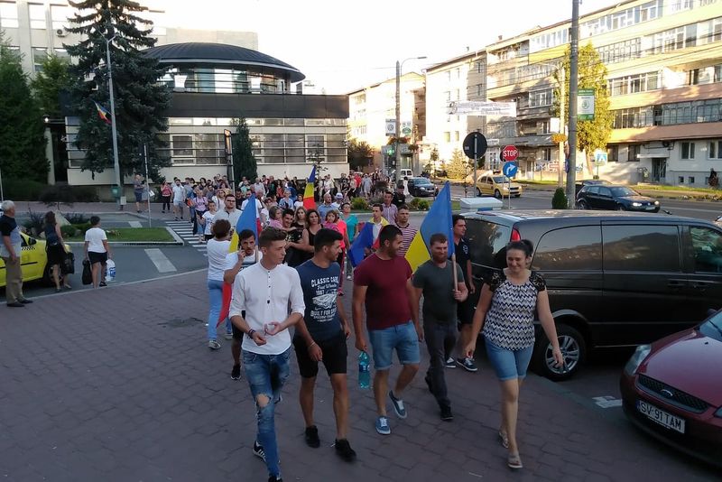 La protestul spontan participă atât locuitori ai municipiului Suceava, în majoritate tineri, cât și suceveni plecați în străinătate care au venit în concediu în țară. Oamenii poartă steaguri tricolore și pancarde cu sloganuri împotriva PSD și a lui Liviu Dragnea.Doi tineri au venit cu tricouri inscripționate cu mesajul apărut pe numărul de înmatriculare al unui român din Suedia. Alți suceveni aveau inscripționate pe tricouri sloganuri împotriva politicienilor condamnați penal.Protestatarii s-au adunat în fața Palatului Administrativ, clădire unde funcționează Prefectura Suceava. Ulterior, cei peste cinci sute de participanți au mărșăluit pe străzile orașului.Pe drum, au fos scandate sloganuri împotriva PSD și i-au invitat pe suceveni să li se alăture.Mitingul spontan s-a desfășurat fără incidente.