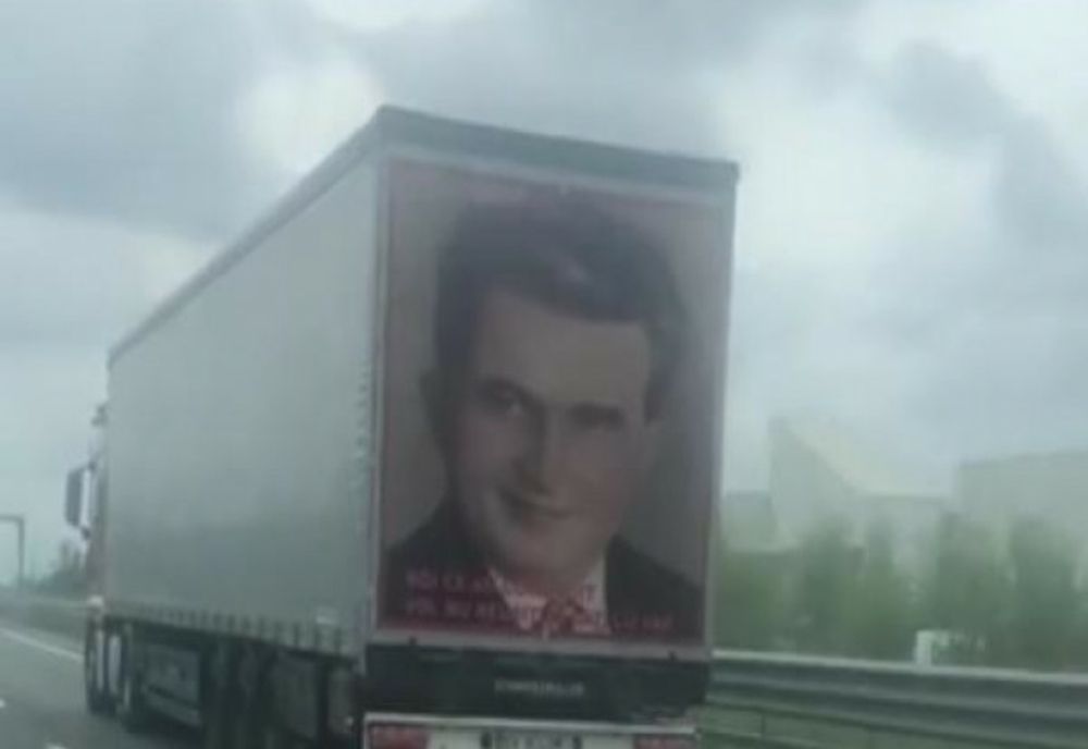 Imaginile surprinse pe o autostradă din Italia au devenit virale. Șoferul unui TIR cu număr de înmatriculare de Suceava român a făcut senzație cu portretul lui Nicolae Ceauşescu.