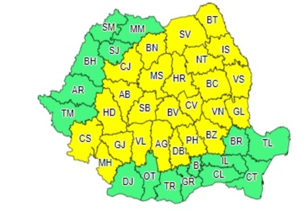 Vremea 25 august - Cod galben de vreme severă - Harta unde lovesc fenomenele extreme