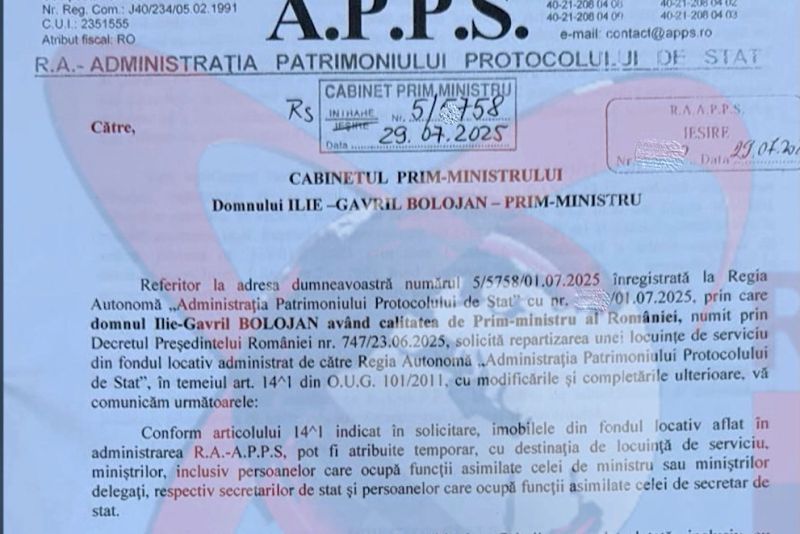 ANCA ALEXANDRESCU A PREZENTAT DOVADA: „BOLOJAN A STAT ILEGAL ÎN VILA DE PROTOCOL” - DOCUMENT
