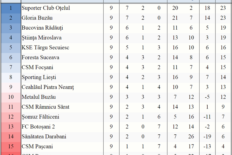 FC Botosani II - Sanatatea Darabani: 6-1 CSM Roman - Sporting Liesti: 1-5 Gloria Buzau - CSM Ramnicu Sarat: 4-2 Bucovina Radauti - Ceahlaul Piatra Neamt: 0-0 Somuz Falticeni - CSM Pascani: 2-1 CSM Focsani - Stiinta Miroslava: 1-2 Foresta Suceava - Otelul Galati: 0-0 KSE Targu Secuiesc - Metalul Buzau: 1-1