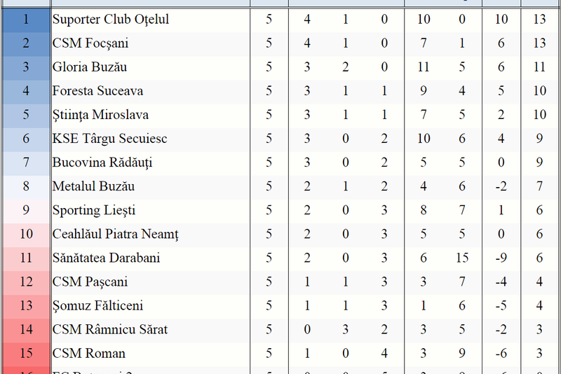 FC Botoșani 2 – Sporting Lieşti: 0-2 CSM Focşani – KSE Târgu Secuiesc: 3-0 Sănătatea Darabani – CSM Râmnicu Sărat: 2-1 Ceahlăul Piatra Neamţ – CSM Paşcani: 3-1 Bucovina Rădăuţi – Suporter Club Oţelul: 0-1Şomuz Fălticeni – Metalul Buzău: 0-0 Foresta Suceava – CSM Roman: 5-1Gloria Buzău – Ştiinţa Miroslava: 3-3